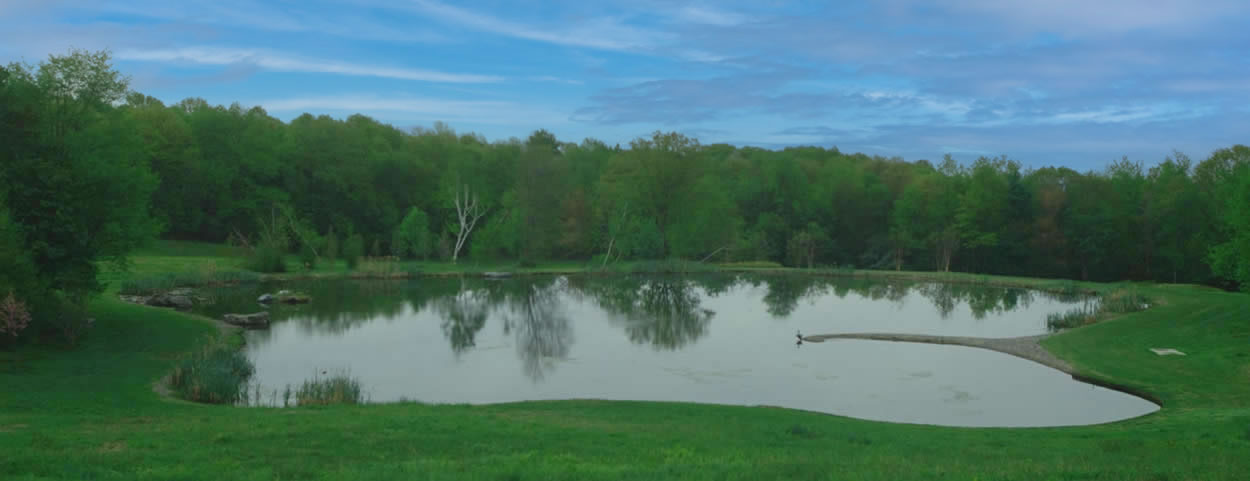 This 1.25 acre lined lake features an architectural spit that provides access out into the lake; a small island and an ample amount of shoreline aquatic plants providing abundant habitat for local wildlife.